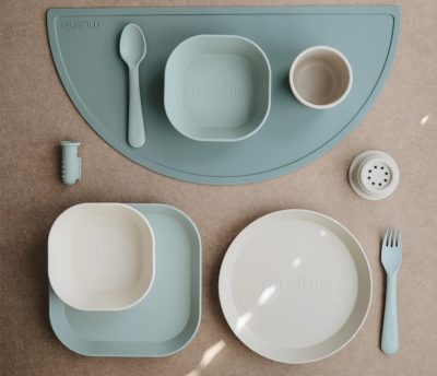 As tigelas We Might be Tiny têm uma base de sucção embutida que mantém a tigela firmemente no lugar em qualquer superfície sólida para que o seu Mogli não faça do seu prato um objeto voador. Para facilitar o trabalho dos pais, estes pratos poderão ser lavados na máquina de lavar loiça e serem usados também no micro-ondas. O design da tigela arredondada torna mais fácil pegar nos alimentos com a colher. Para além disso possui uma tampa para armazenar alguma sobra que o seu Mogli queira comer mais tarde.