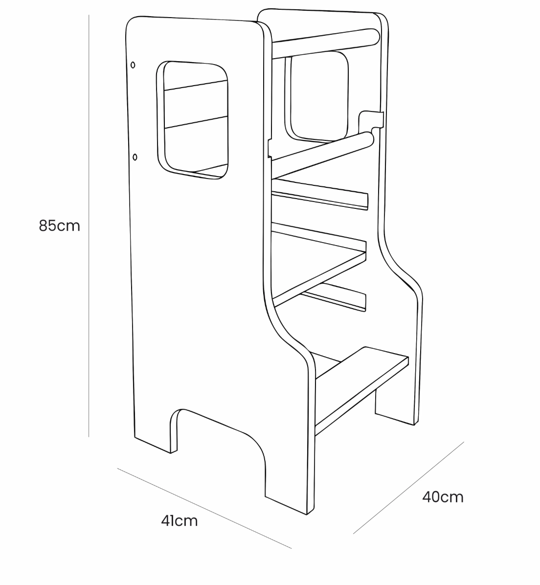 Cozinhar em conjunto não é só diversão – é também aprendizagem, desenvolvimento e construção de autoconfiança. O nosso torre de aprendizagem infantil em MDFfoi concebido para combinar segurança, durabilidade e design moderno. A superfície lisa é agradável ao toque, e as bordas arredondadas garantem conforto na utilização.